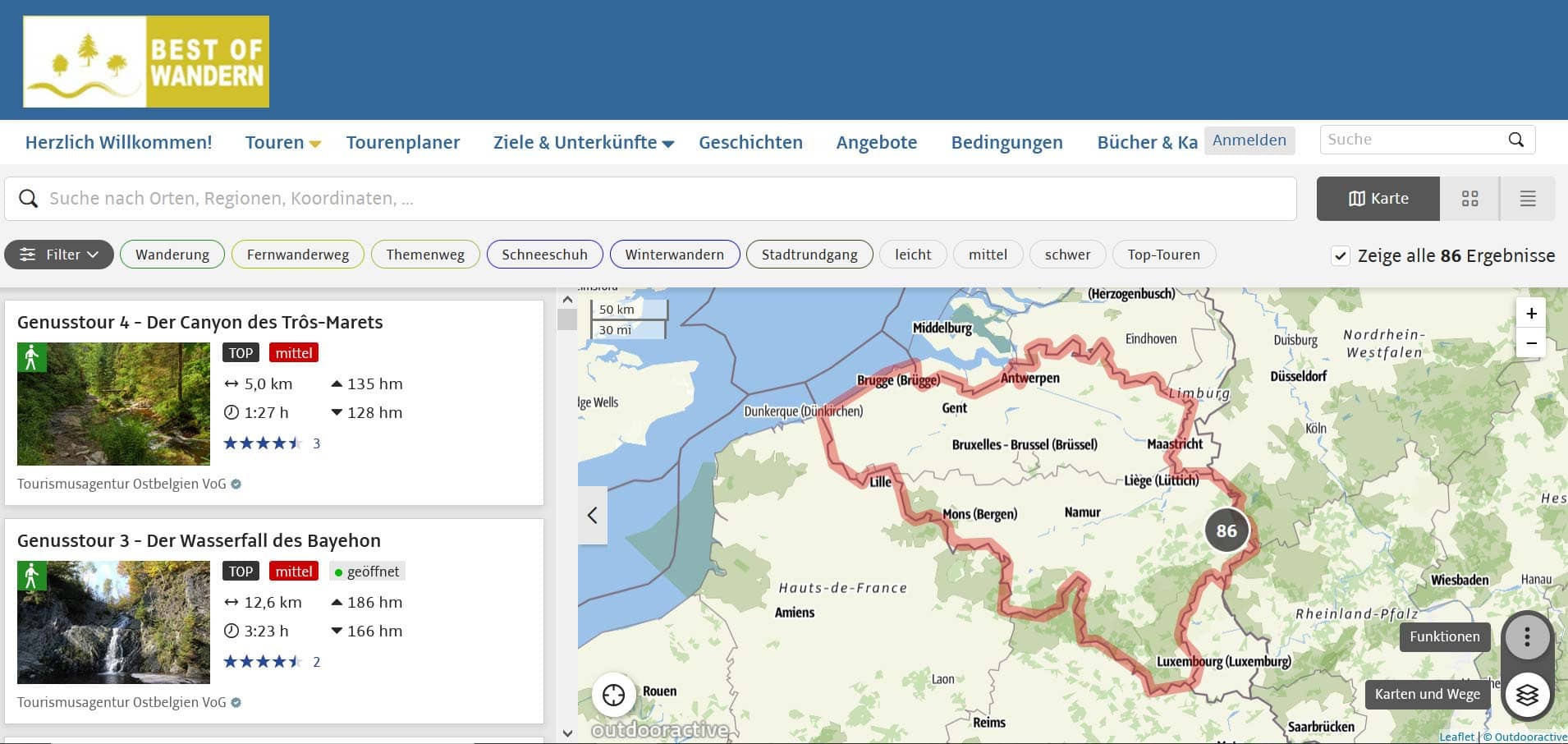 Im Wanderland Ostbelgien vereinen sich die beiden herrlichen Wanderregionen der Eifel und der Ardennen. Im Vierländereck zwischen Belgien, Deutschland, den Niederlanden und Luxemburg ermöglicht der grenzüberschreitende Naturpark „Hohes Venn-Eifel“ eine Vielzahl von Wanderungen mitten im Herzen Europas. Insgesamt 2.500 Kilometer markierte Wanderwege durchziehen diese landschaftlich und kulturell sehr abwechslungsreiche Region. Weite Panorama-Aussichten bieten sich im Hohen Venn und im Ourtal, spannende Pfade verlaufen entlang wilder Flussläufe im Warche- oder Hilltal, sanfte Hügellandschaften verzaubern im Norden der Region, trutzige Burgen stehen über den Flüssen und stille, kleine Dörfer laden zum Bleiben ein. All das macht Ostbelgien zu einem unvergesslichen Wandererlebnis.