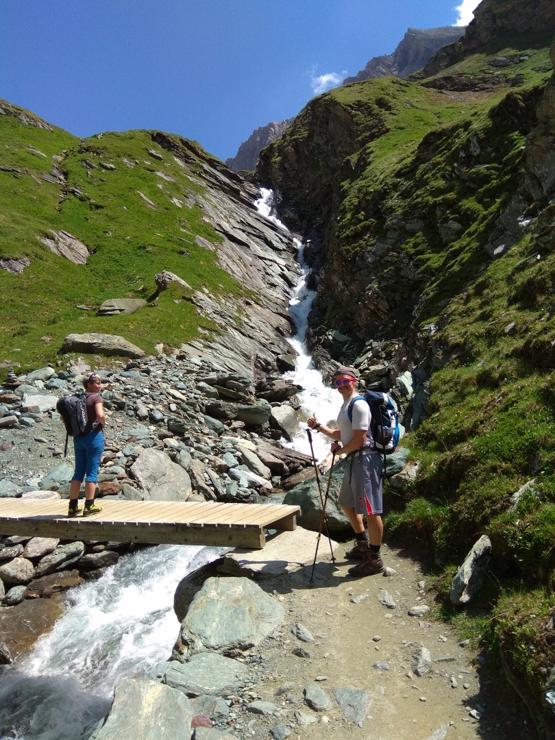 Die Verlockungen der Speisekarte waren allerdings wohl zu groß für uns und so fanden wir uns zwei Stunden später in einem rundum übersättigten Zustand auf der Sonnenterrasse der Hütte wieder. Es gibt Schlimmeres als reichlich vieles Essen, allerdings bei 900m Abstieg nicht unbedingt die erste Wahl.