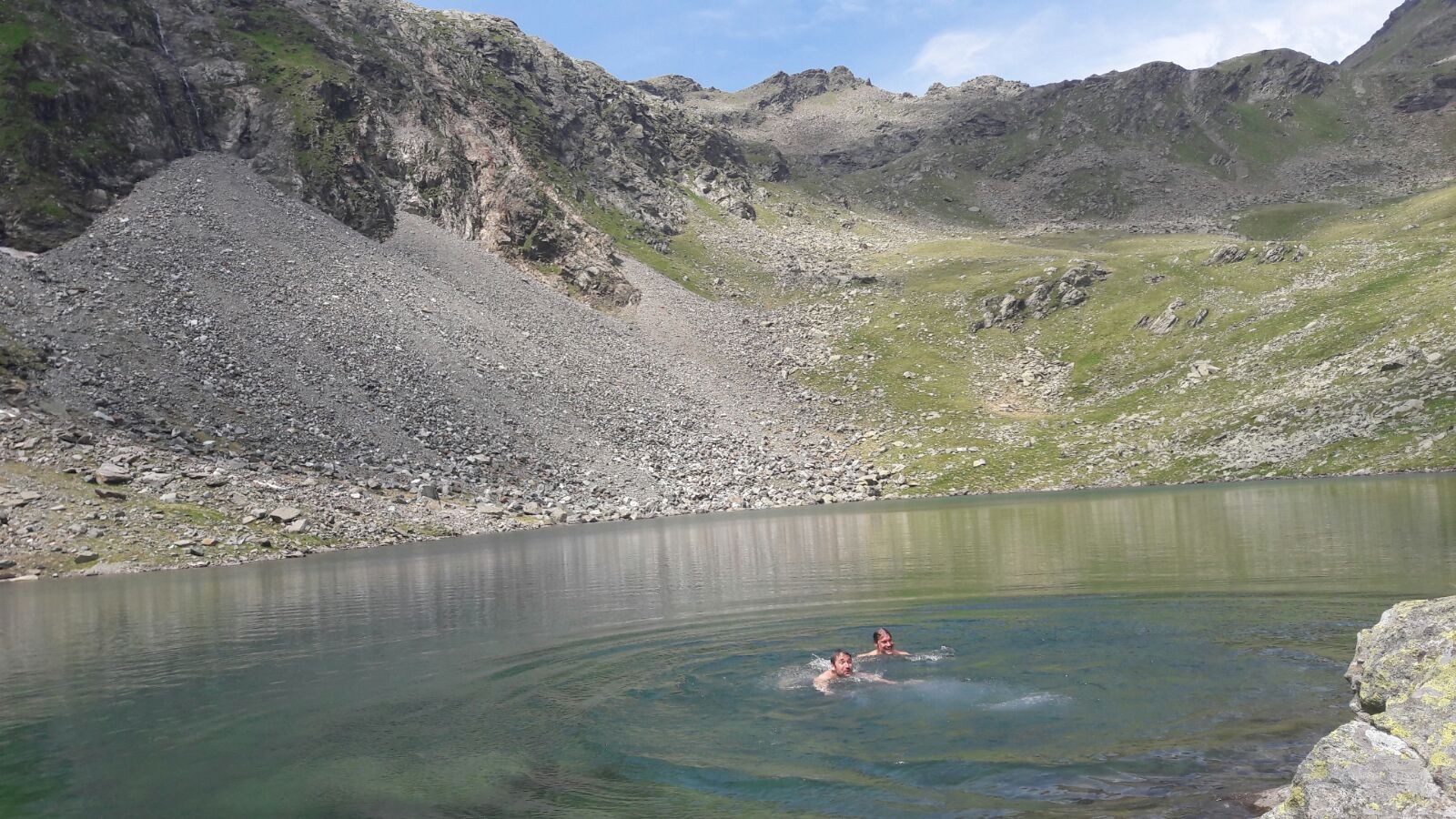 Das absolute Highlight aus unserer Sicht war aber mit Sicherheit unser obligatorisches Bad im Bergsee, dass zu unserer persönlichen Bergroutine unbedingt dazugehört. Bei schönstem Sonnenschein legten wir unsere Handtücher aus und genossen unser Bad im Trelebitsch-See – zum sichtlichen Vergnügen von Andreas und Sandra, die wir leider nicht überzeugen konnten mitzumachen.