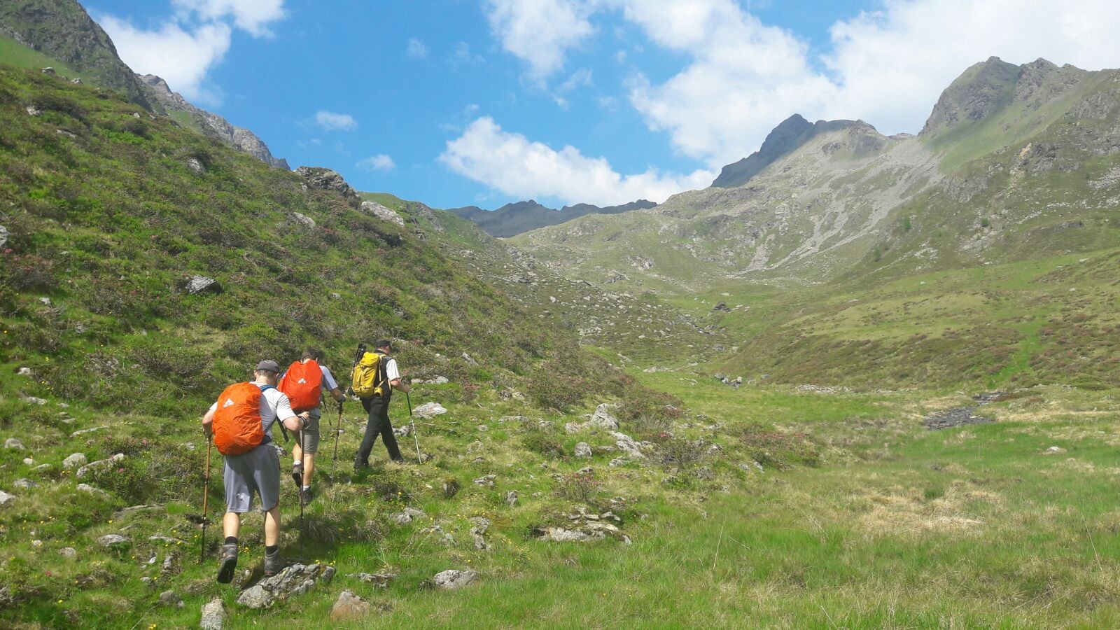 Nach dem Super Einstand gestern ging es heute richtig los mit vollem Programm. Nach einem Riesenfrühstück machten wir uns auf zum Parkplatz Seichenbrunn, dem Ausgangspunkt für viele Wanderungen im Nationalpark Hohe Tauern, wo uns Andreas unser Nationalpark-Ranger und Sandra vom Nationalpark-Team schon erwarteten. Wir waren sofort auf einer Wellenlänge und starteten durch zur Trelebitsch-Alm. Ein Überbleibsel vom Gewitter am letzten Abend zwang uns zwar kurzzeitig zu Beginn unter einen Baum, den Schauer nutzten wir aber spontan für eine Einführung in die Nationalparkphilosophie.