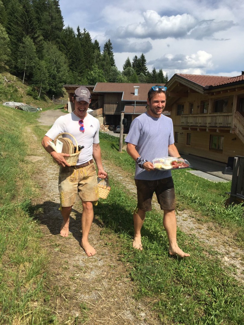 Das Sensen war eine echte Gaudi und eh wir uns versahen, hatten wir schon ein Jobangebot als Sensenmänner am Hof. Nach langem Überlegen wurde das Angebot unsererseits allerdings abgelehnt, auch wenn man es auf dem Hof super aushalten kann. Außerdem haben wir uns als Melker leider nicht mehr so mit Ruhm bekleckert wie noch bei der Grasbeschaffung.