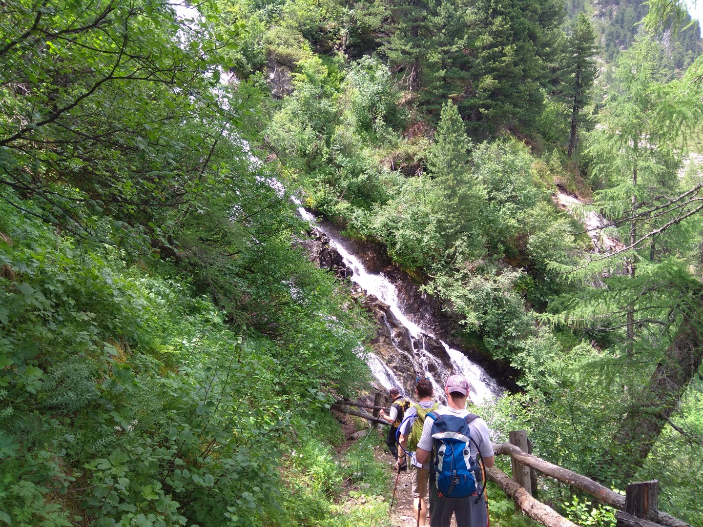 Nach dem Super Einstand gestern ging es heute richtig los mit vollem Programm. Nach einem Riesenfrühstück machten wir uns auf zum Parkplatz Seichenbrunn, dem Ausgangspunkt für viele Wanderungen im Nationalpark Hohe Tauern, wo uns Andreas unser Nationalpark-Ranger und Sandra vom Nationalpark-Team schon erwarteten. Wir waren sofort auf einer Wellenlänge und starteten durch zur Trelebitsch-Alm. Ein Überbleibsel vom Gewitter am letzten Abend zwang uns zwar kurzzeitig zu Beginn unter einen Baum, den Schauer nutzten wir aber spontan für eine Einführung in die Nationalparkphilosophie.