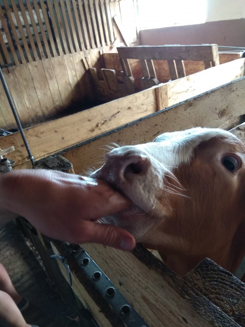 Das Sensen war eine echte Gaudi und eh wir uns versahen, hatten wir schon ein Jobangebot als Sensenmänner am Hof. Nach langem Überlegen wurde das Angebot unsererseits allerdings abgelehnt, auch wenn man es auf dem Hof super aushalten kann. Außerdem haben wir uns als Melker leider nicht mehr so mit Ruhm bekleckert wie noch bei der Grasbeschaffung.